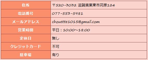 TEL:077-553-5981 Mail:chouette1015@gmail.com